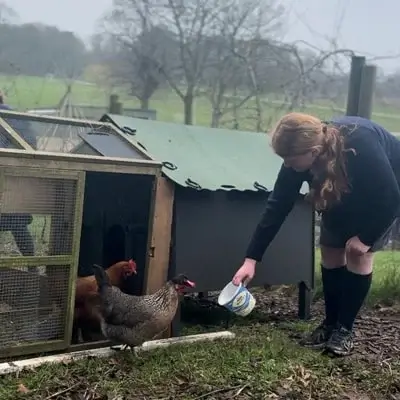Learn the joys of caring for chickens. Discover everything from feeding and cleaning to understanding chicken behaviour and the different breeds of chickens and the eggs they lay. Gain valuable knowledge about animal care with hands on experience with our flock of chickens.
