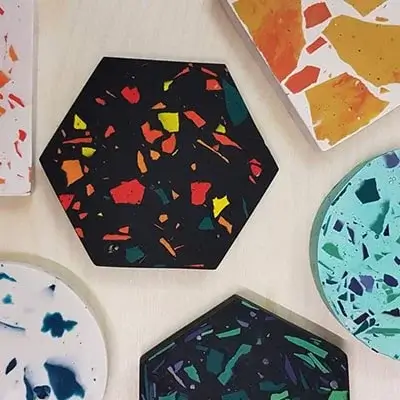 An alternative medium to ceramics that can be manipulated into different items coasters, jewellery, storage boxes.