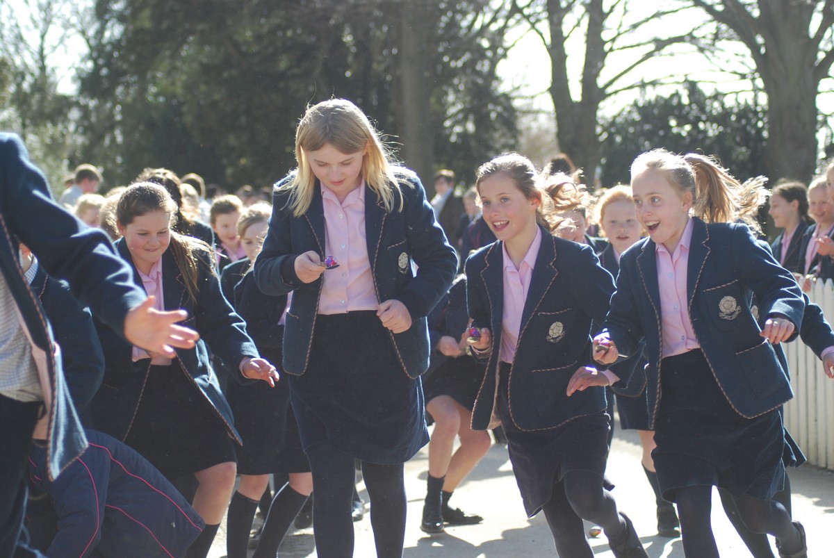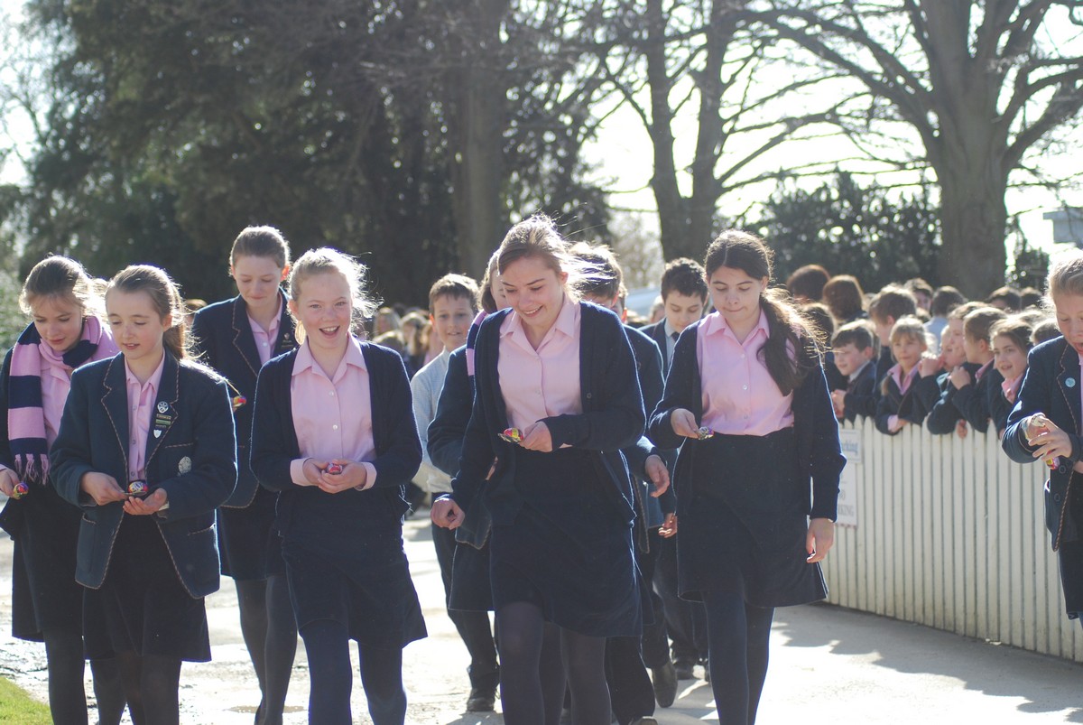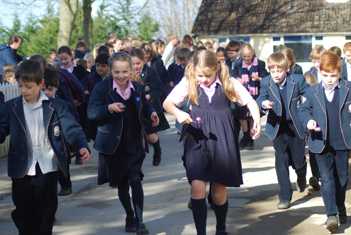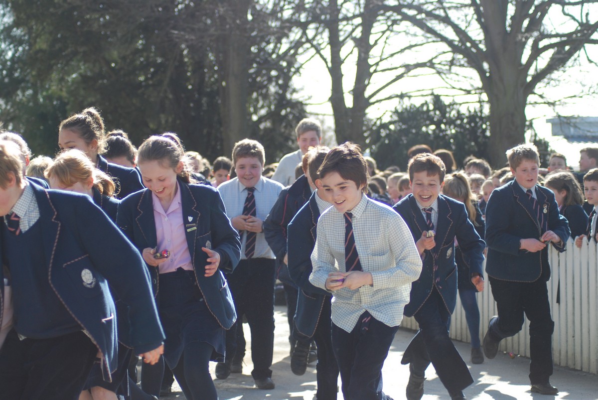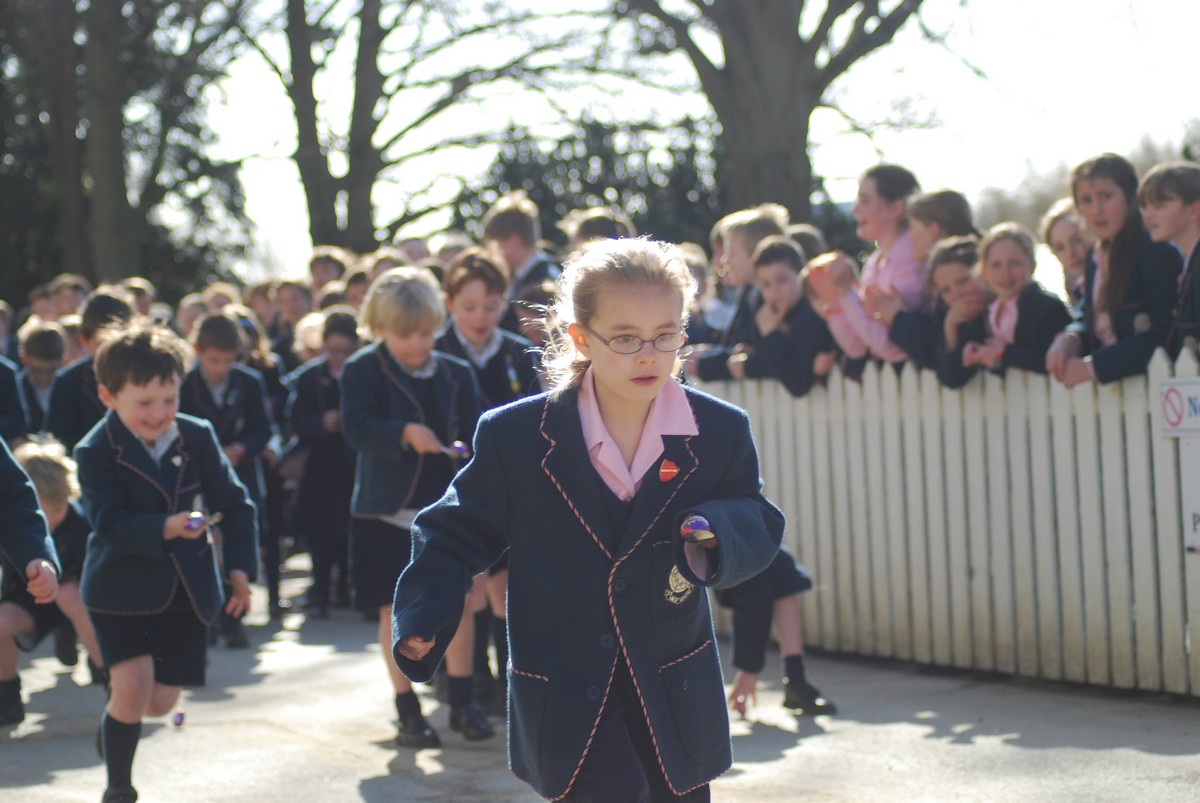 There was much scrambling of eggs around the grounds of school as pupils from Pre-Prep all the way through to Thornton took part in a succession of egg and spoon races. Staggered by age groups, the races saw pupils hurtling around the main school buildings and the lawns whist simultaneously trying to keep their crème eggs from falling out of their spoons (for which various methods, of varying degrees of legitimacy, were employed). Most eggs and runners made it to the finishing line, some rather worse for wear by that point than others!